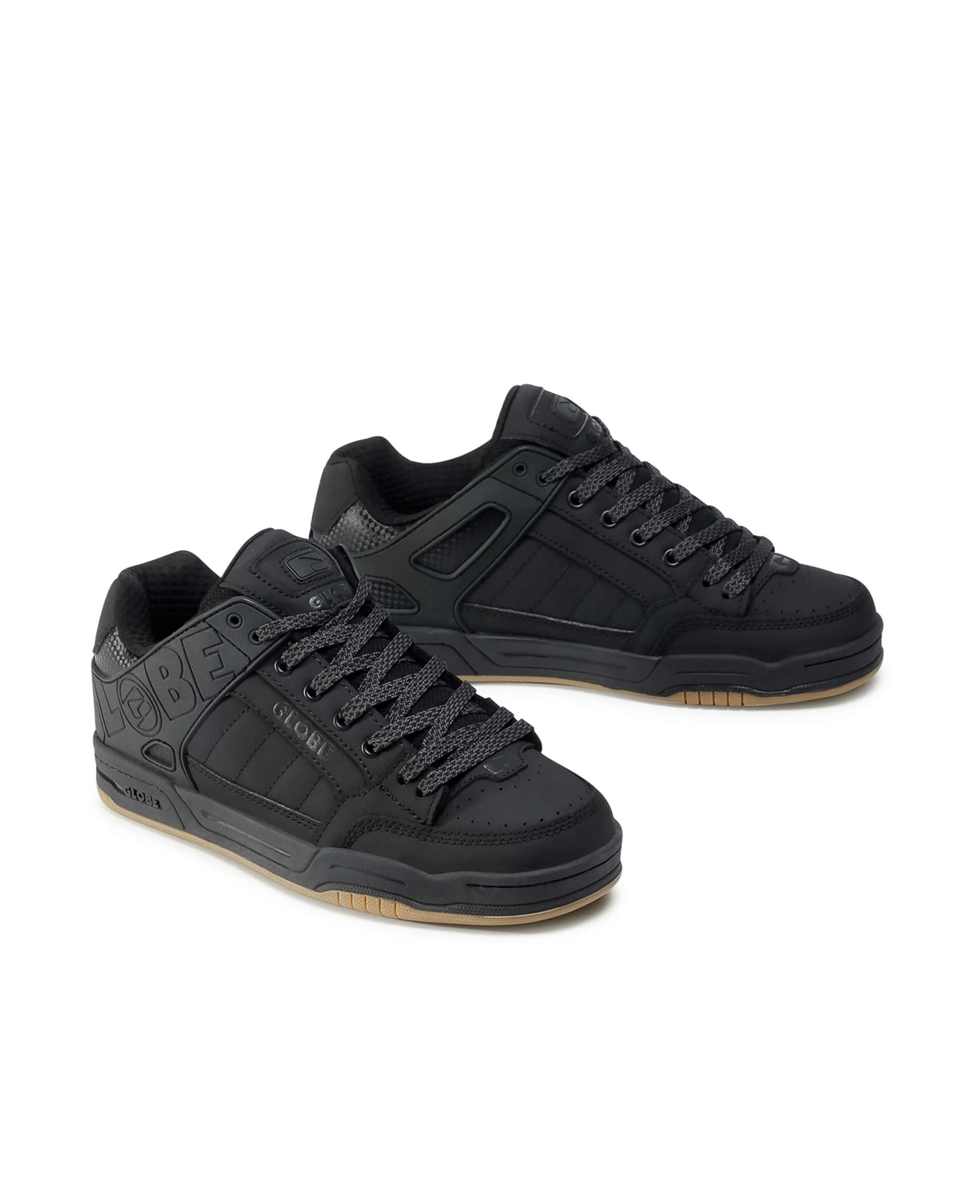 Globe Brand's Tilt sneakers feature a classic skateboard silhouette. They are made of action and synthetic nubuck, textile upper and TPR. This shoe features a molded TPR outer collar for support and durability, and an S-Trac™ sole pattern to improve grip and board feel.