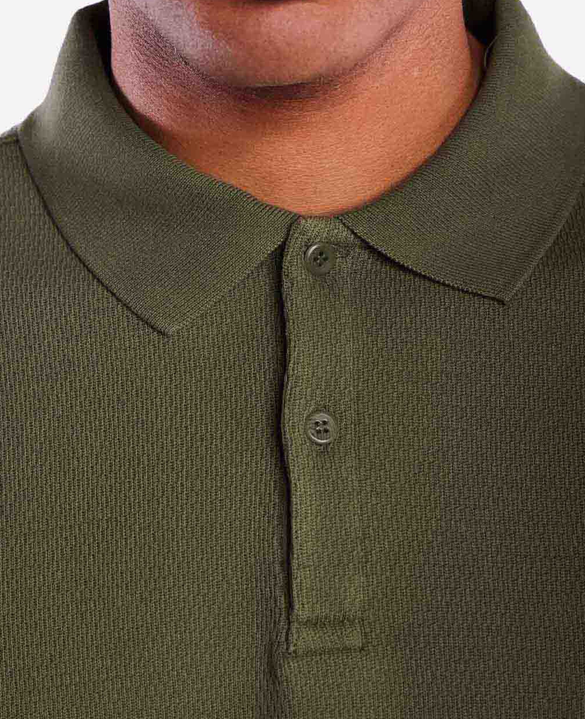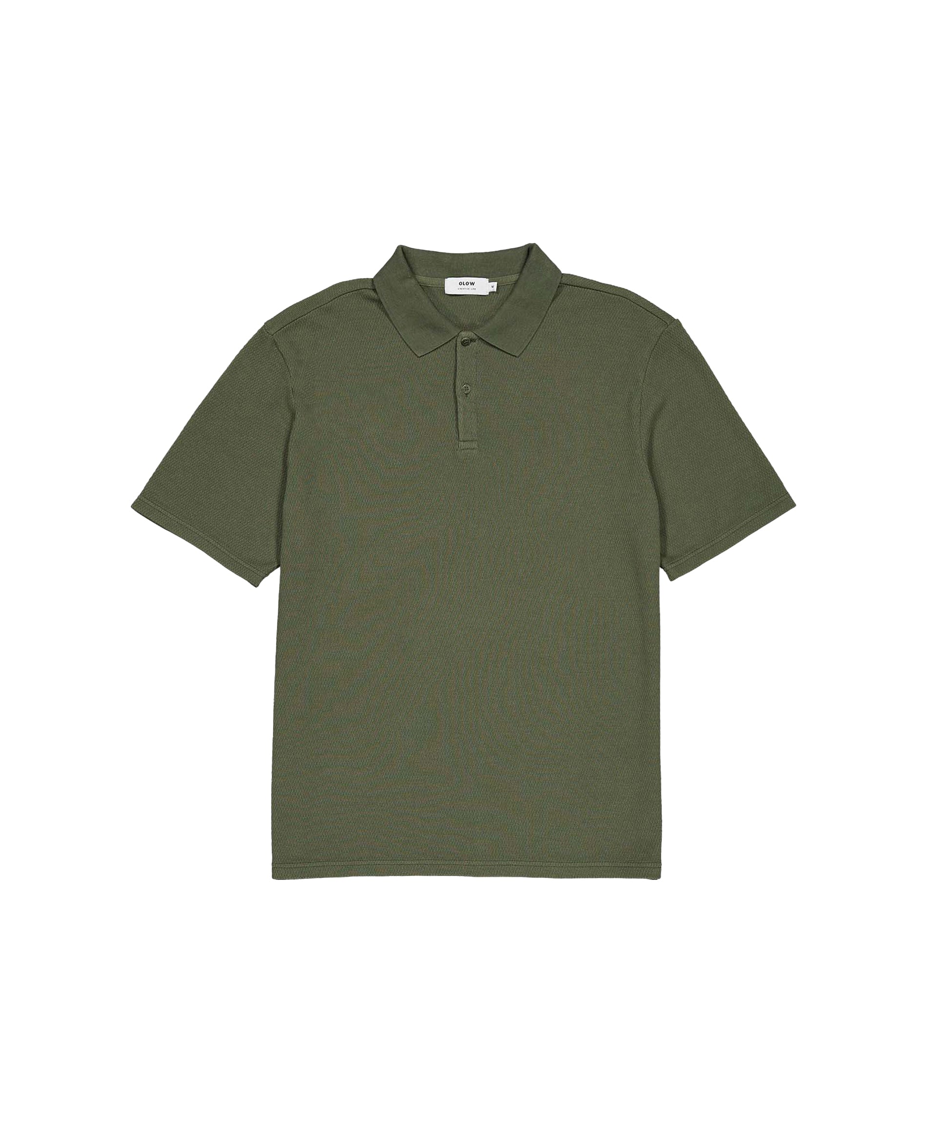 El polo de manga corta Fez Polo de OLOW se ha confeccionado en algodón orgánico de corte largo. También presenta un cuello de punto plano y va abotonado desde el cuello hasta el bajo con botones de corozo naturales.